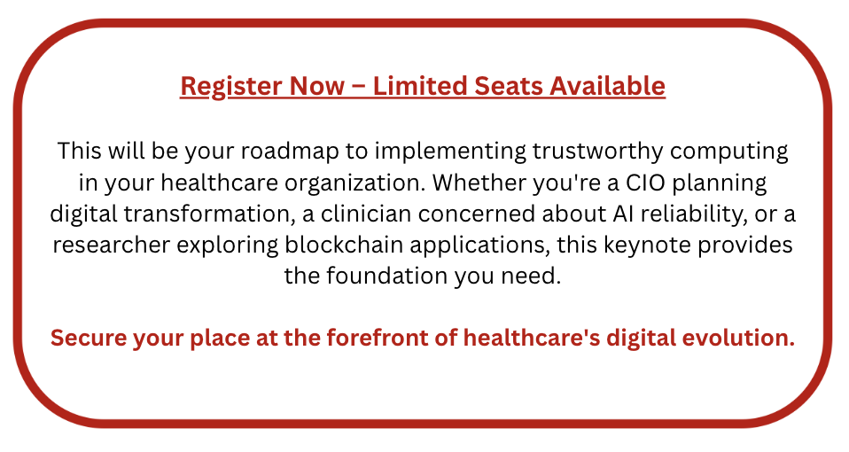 In an era where AI diagnoses diseases, blockchain secures patient records, and algorithms determine treatment protocols, trust isn't just important – it's everything. This keynote addresses the critical shift from reputation-based trust to algorithmic trust that's reshaping